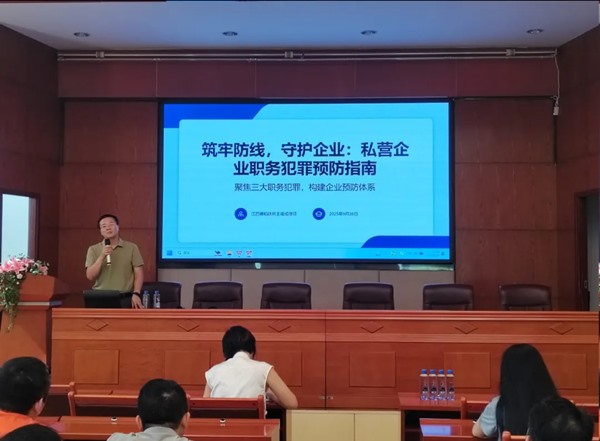 為深化管理,強化風(fēng)險防控、提升全員廉潔素養,樹(shù)立清晰的職業(yè)紅線(xiàn)意識,公司于9月26日下午組織開(kāi)展法務(wù)專(zhuān)題培訓。本次培訓特別邀請到擁有豐富實(shí)務(wù)經(jīng)驗的法務(wù)專(zhuān)家現場(chǎng)授課,為公司管理層及核心崗位人員帶來(lái)了一場(chǎng)兼具專(zhuān)業(yè)性與實(shí)用性的法律盛宴。培訓中,法律專(zhuān)家以私營(yíng)企業(yè)常見(jiàn)的三大職務(wù)犯罪為核心...